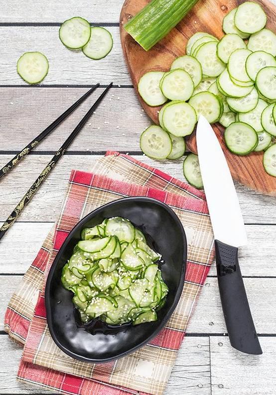 4. 做凉菜:将腌白瓜切成条状,与其他食材一起制作凉菜,清爽开胃。